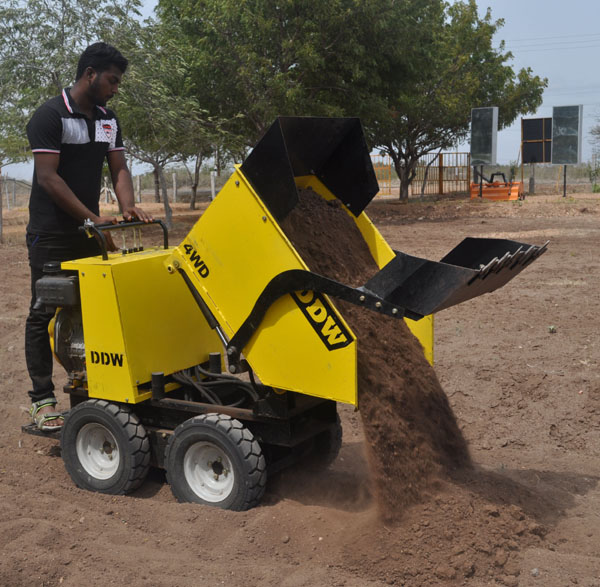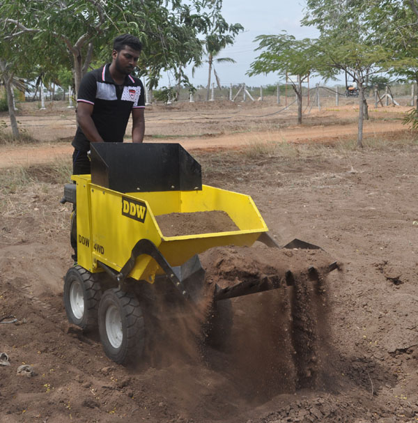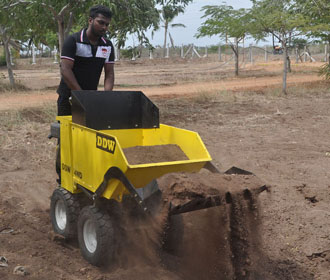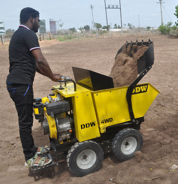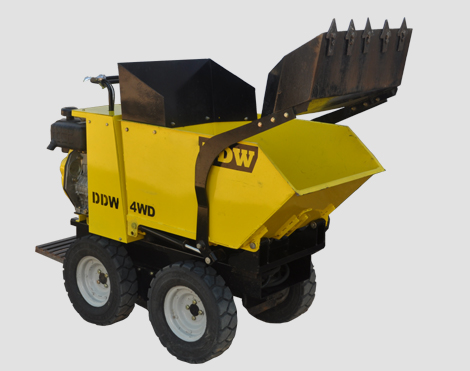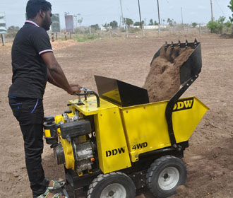 DDW Mini Dumper is an innovative material handling and earth moving equipment powered by the efficient REN Diesel / Petrol engines and efficient Hydrostatic drive. The DDW Mini Dumper can help move material effortlessly. With Fully Hydraulic 4 wheel drive system coupled with the Skid Steer arrangement manoeuvring around tight corners and tough terrains is made so easy!